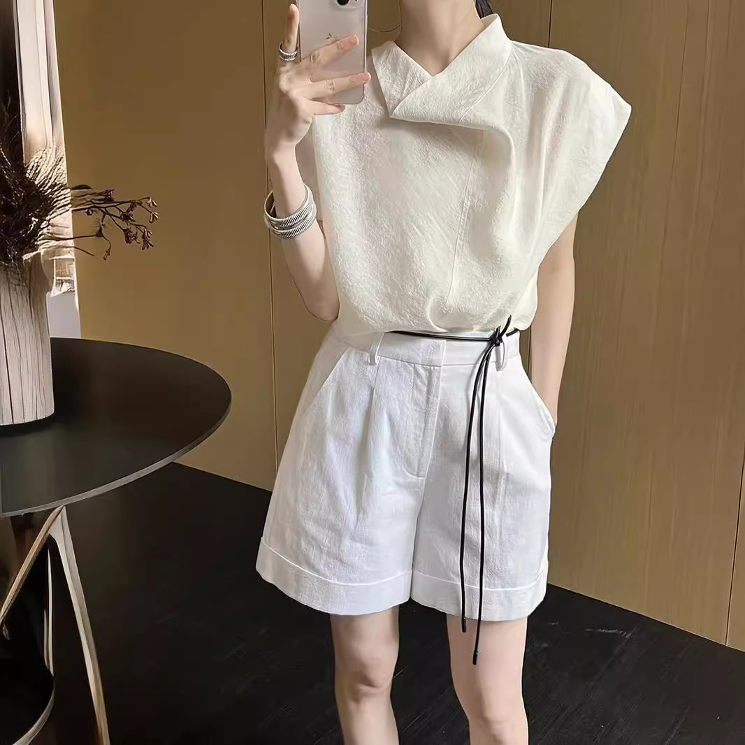 نمط جديد 55% كتان حزام قابل للفصل تصميم 2024 شورت كتان قطن مستقيم للصيف