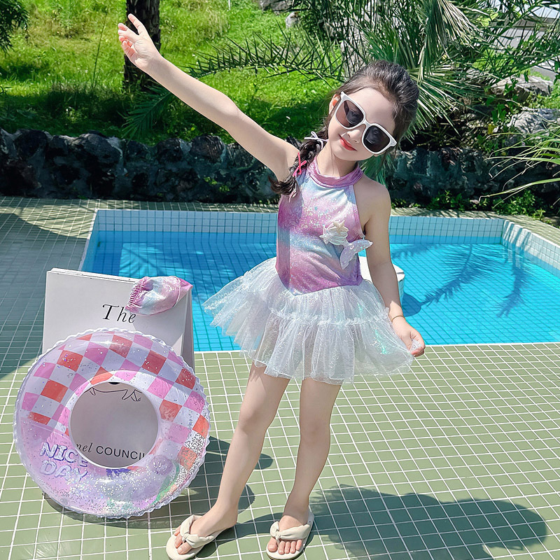 ملابس سباحة للفتيات قطعة واحدة 2024 جديدة للأطفال الصغار والمتوسطة الحجم ملابس سباحة للأميرة للأطفال على الطراز الغربي تنورة من الشاش ملابس سباحة عصرية