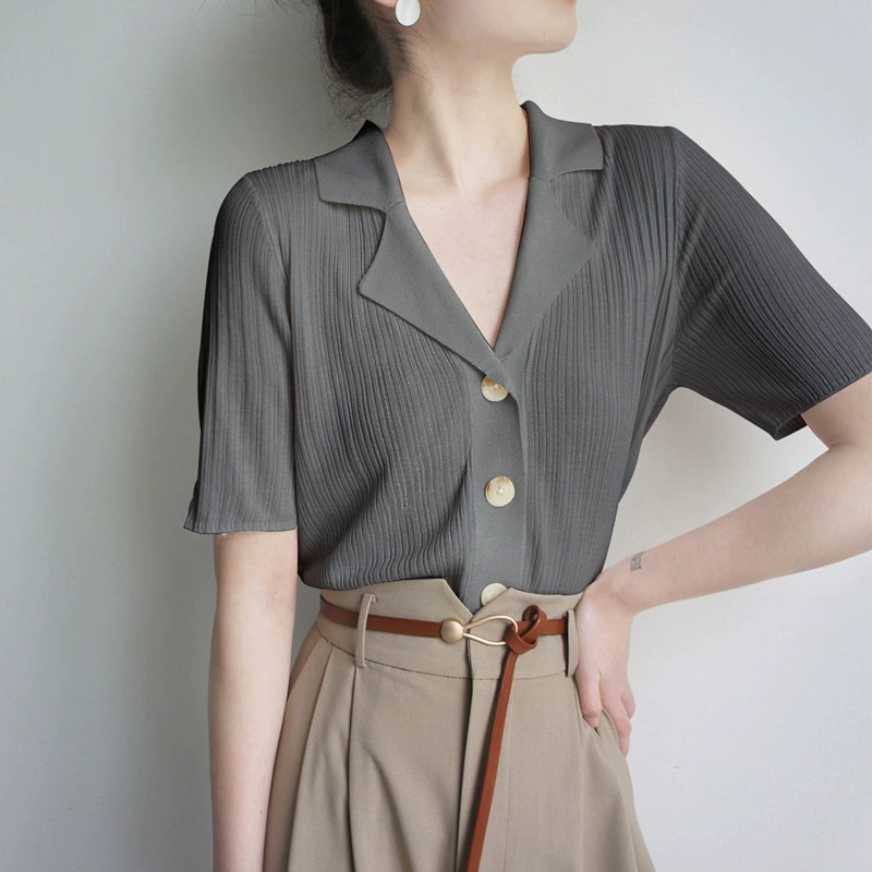 قميص أزياء البولو قميص الجليد الحرير رمادي أكمام قصيرة