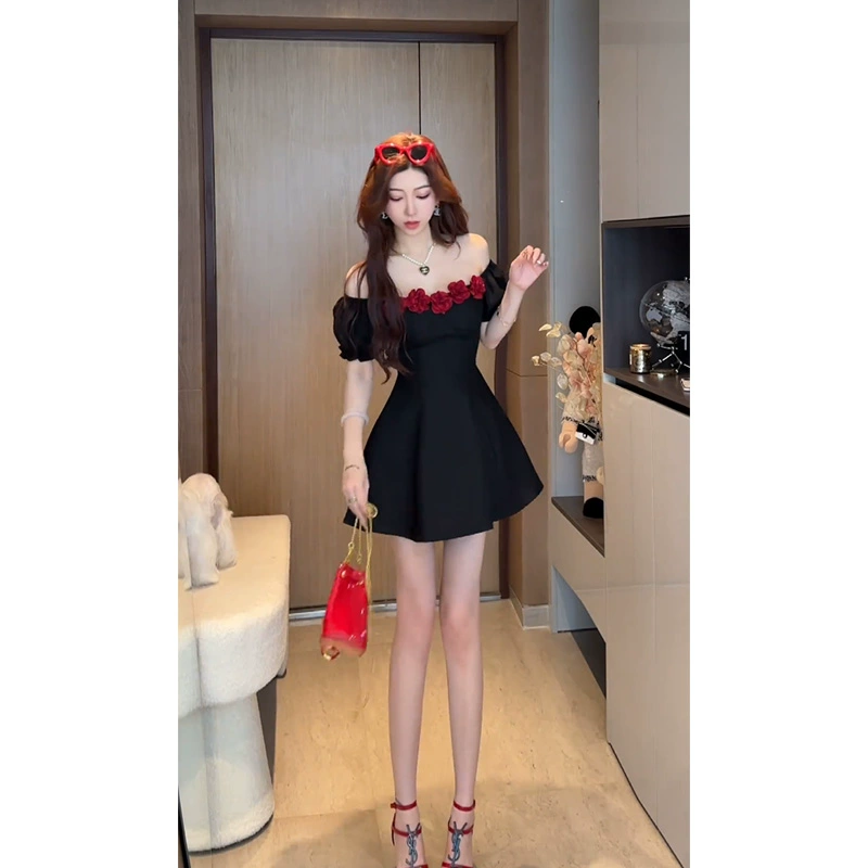 رغبة نقية مثير زهرة فستان بكتف واحد المرأة الخصر التخسيس ألف خط تنورة قصيرة 2024 صيف جديد الملابس النسائية