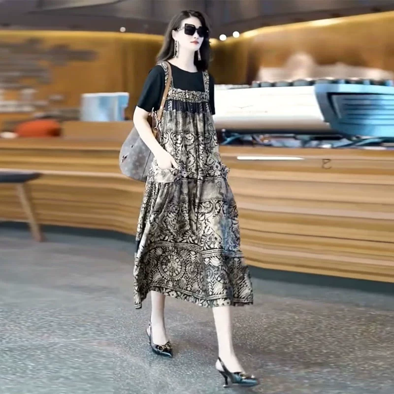 تنورة بحمالات فاخرة احترافية من القطن والكتان الأوروبي للسيدات