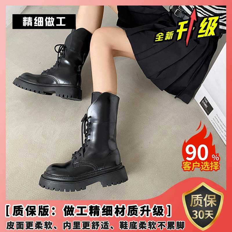 Martin Boots for Women في الربيع والخريف متعدد الأنبوب في منتصف الأنبوب Martin Boots