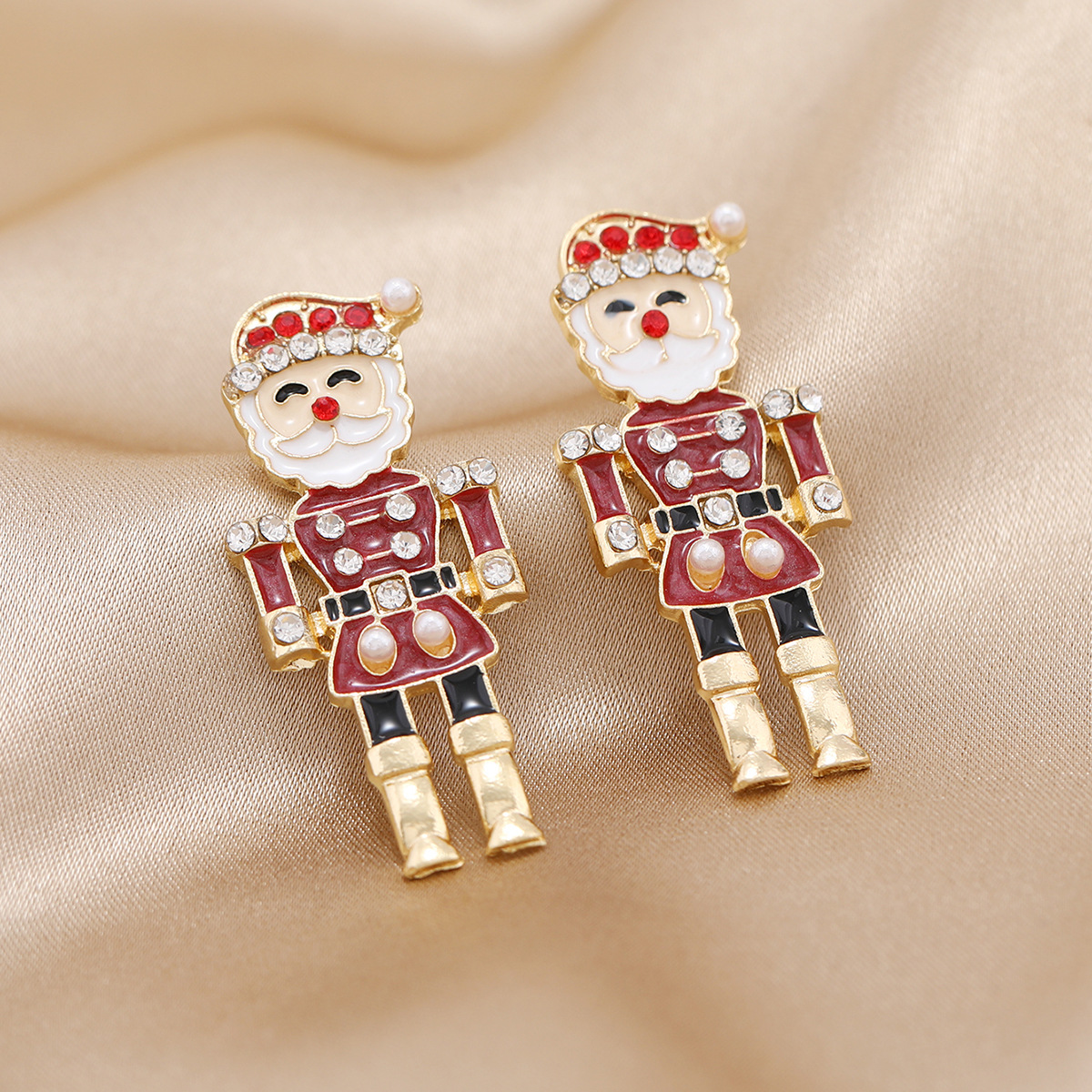 عبر الحدود الأوروبية والأمريكية سلسلة عيد الميلاد سبيكة أقراط شخصية الإبداعية الماس أقراط سانتا كلوز