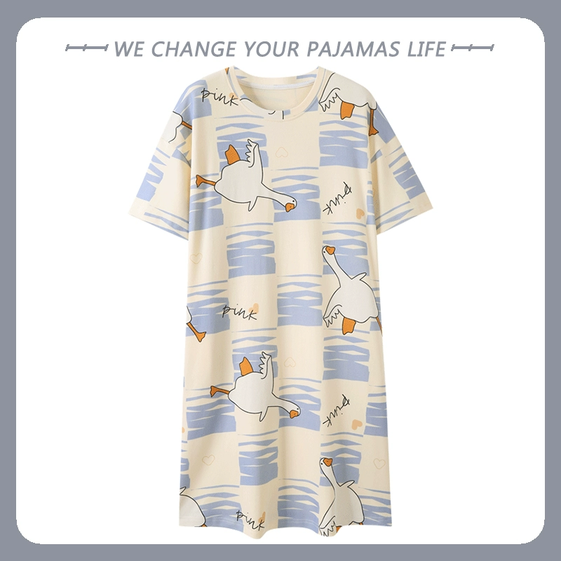 Yu Zhaolin ثوب نوم صيفي كرتوني رقيق بأكمام قصيرة من القطن الخالص