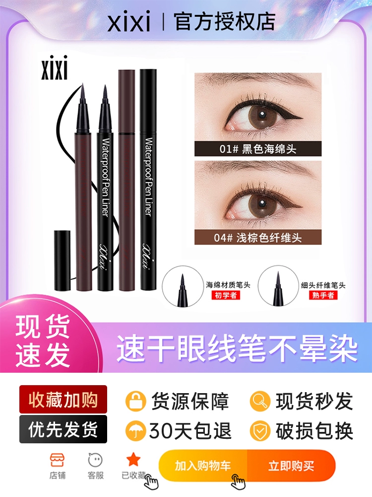 قلم كحل ملون من Xixi مقاوم للماء وغير قابل للتلطخ أبيض وأسود وبني مستلقي على شكل دودة القز ساطع عالي اللمعان قلم كحل سائل فائق النعومة