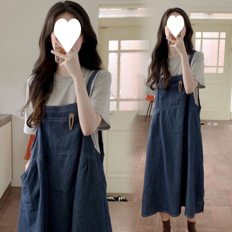 بدلة تنورة من الدنيم للنساء الحوامل للربيع والخريف مكونة من قطعتين فضفاضة بمقاس كبير مع حزام ملابس للأطفال من المصنع للبيع بالجملة عبر الحدود