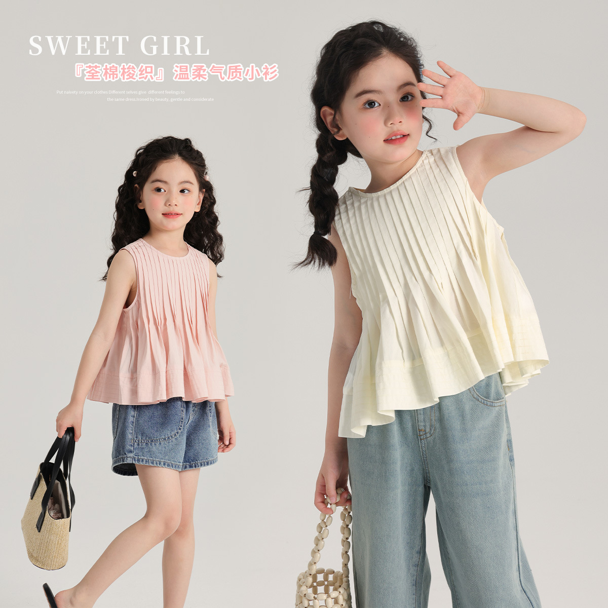 قميص صيفي جديد للفتيات 2024 قميص صيفي جديد للأطفال غير رسمي بأكمام قصيرة مطوي