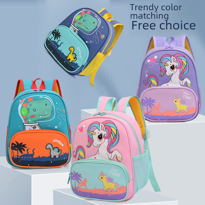 حقيبة مدرسية جديدة للأطفال مزينة برسوم كارتونية لطلاب المدارس الابتدائية حقيبة ظهر صغيرة مطبوعة بألوان متباينة للأولاد والبنات بظهر مزدوج للبيع بالجملة