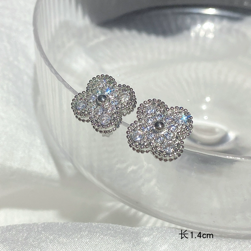أقراط كورية من الفضة الإسترليني المتخصصة للسيدات سلسلة الترقوة بأربع أوراق البرسيم