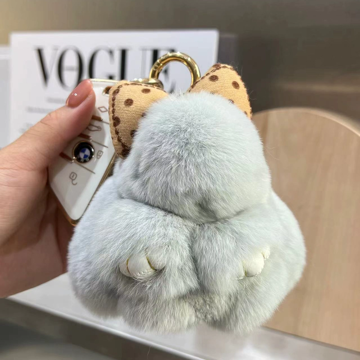 لطيف حقيقي ريكس أرنب الفراء القوس الصغير أرنب سيارة المفاتيح قلادة الإضافية أفخم دمية حقيبة مدرسية قلادة
