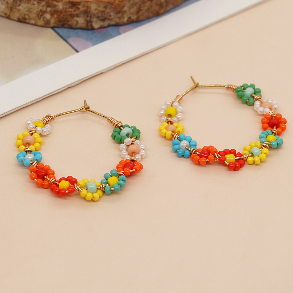 عبر الحدود الساخنة الخرز المنسوجة الأقراط الإبداعية الزهور الملونة اليدوية الأذن مشبك الأزياء والمجوهرات بالجملة الأوروبية والأمريكية