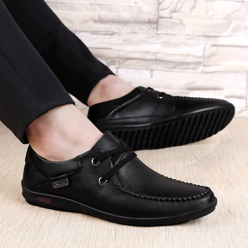 أحذية جلدية كبيرة الحجم للخريف للرجال 45 ملابس رسمية للأعمال 46 نعل ناعم 47 جلد طبيعي 36 مقاس صغير 37 حذاء كاجوال بالفاصوليا السوداء