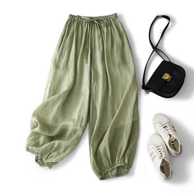 سروال رامي عالي الجودة بلون خالص للسيدات صيفي غير رسمي بخصر متداخل سروال زن للتأمل سروال فضفاض
