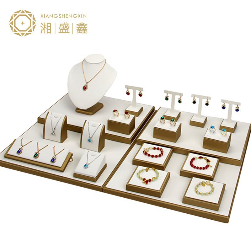 رف عرض المجوهرات الذهبية عالي الجودة وقلادة وسوار وأقراط وسوار صينية عرض المجوهرات وصينية عرض العداد