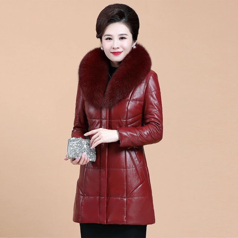 معطف جلد في منتصف العمر وكبار السن معطف مبطن بالقطن معطف شتوي من الجلد للأم من Haining مقاس كبير معطف مبطن بالقطن سميك جديد لكبار السن