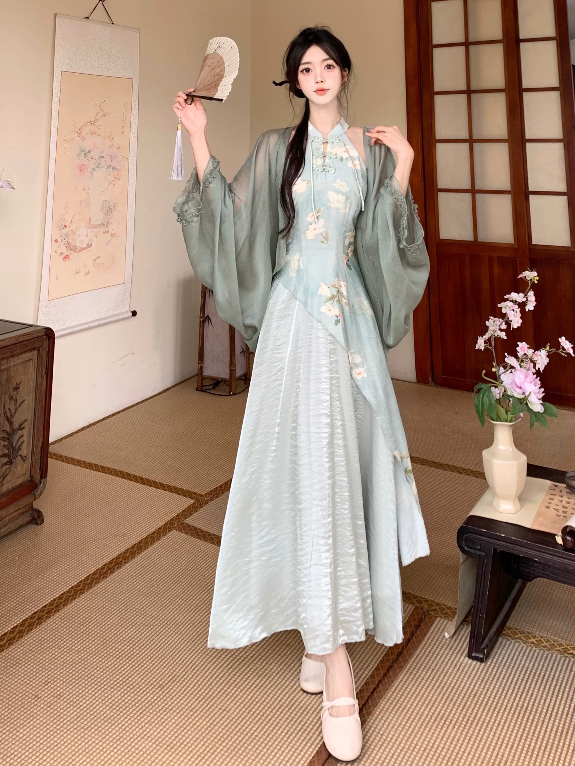 ملابس نسائية للتخسيس وتغطية الدهون MM فستان على الطراز الوطني برقبة رسن