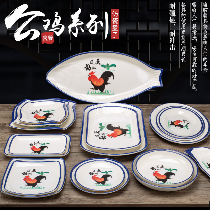 طبق من البورسلين المقلد من الميلامين، مزرعة الديك، قرص كبير خاص، مطعم، طبق مستدير من البلاستيك، طبق بوفيه تجاري