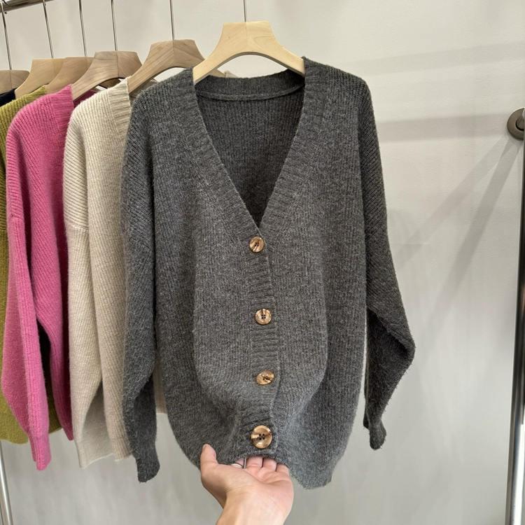 سترة صوفية محبوكة متوسطة الطول بصدر واحد