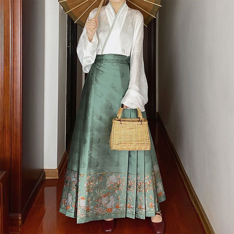 تنورة ماكسي تنورة عالية الخصر، تنورة طويلة احتفالية نسائية يومية من Hanfu، يمكن ارتداؤها للركاب، تسليم المصنع