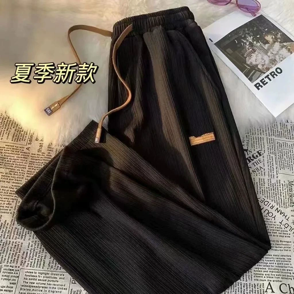 الجليد الحرير الطويل السراويل الطويلة الصيف الرفيعة فضفاضة مستقيمة السراويل واسعة السقوط الرياضة متعددة الاستخدام