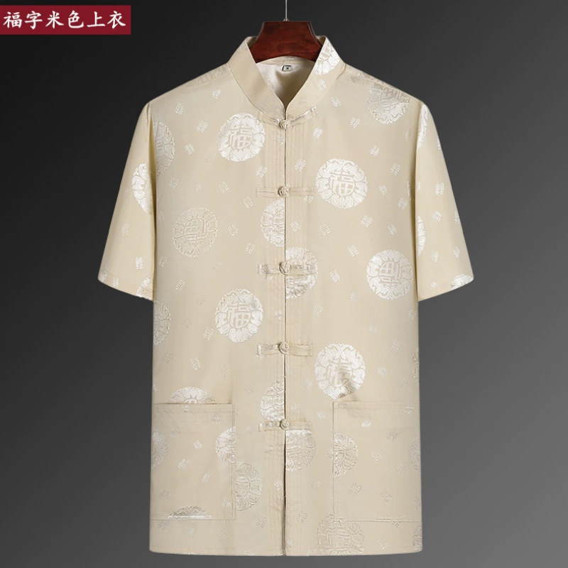 الجليد الحرير تانغ يناسب الأعداد القصيرة للأكمام في صيف منتصف العمر وكبار السن يرتدي ملابس العجوز كبيرة الحجم ملابس الجد الصيفية على الطراز الصيني