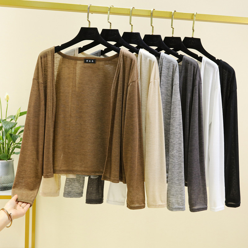 سترة صيفية رفيعة وبسيطة مشروط واقية من الشمس للسيدات بأكمام طويلة وشال معطف رقيق قميص تكييف الهواء