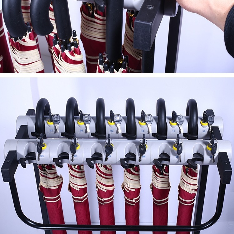 حامل مظلة قاعة الدراسة في بهو الفندق التجاري مع قفل مع مظلة ذات 12 رأس مظلة مخصصة للتخزين المريح