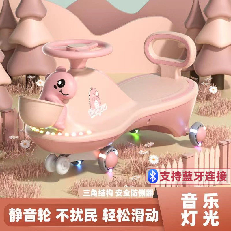 سيارة أطفال ملتوية مضادة للانقلاب للكبار مع موسيقى تدفع باليد، سيارة لعبة أطفال ذات عجلة عالمية