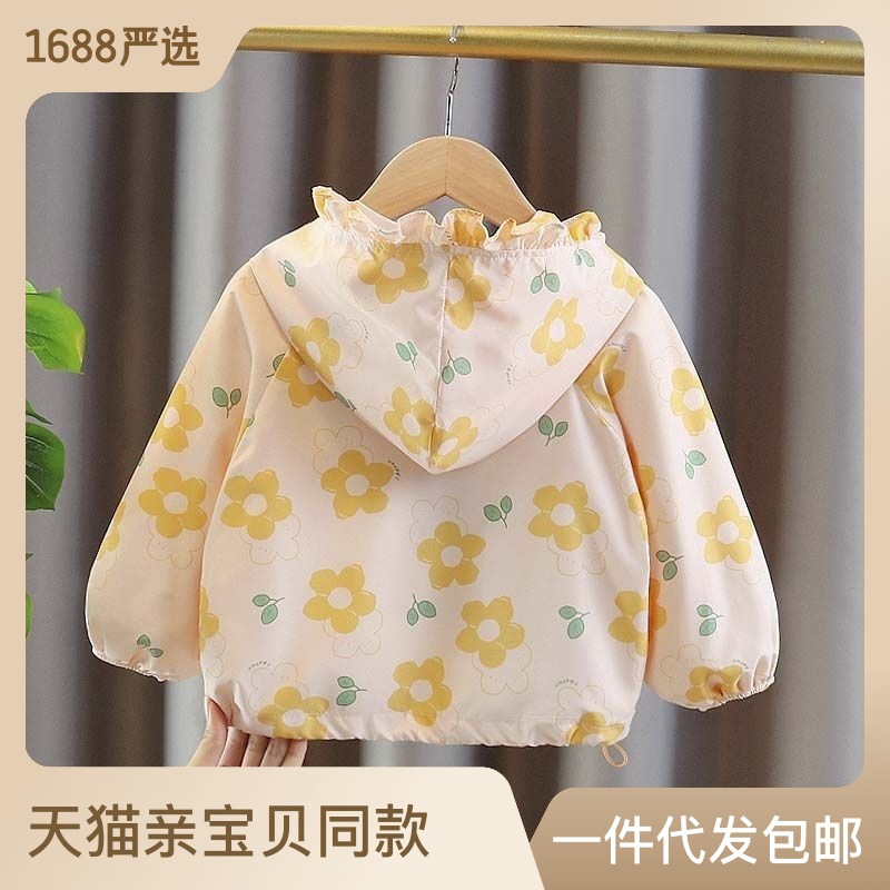 ملابس الخريف للأطفال البنات على الإنترنت معطف سترة واقية بقلنسوة على الطراز الكوري النمط الغربي الجديد للأطفال بعمر 1-6 سنوات 2 للربيع والخريف عصري