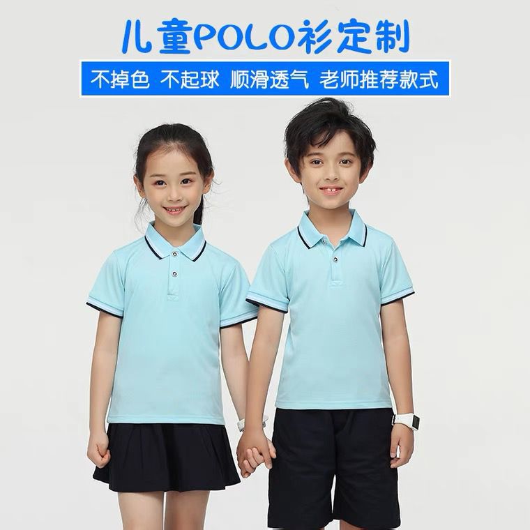 قميص بولو رياض الأطفال تي شيرت بياقة غزل مصبوغ للأطفال بأكمام قصيرة ملابس طلاب المدارس الابتدائية مطبوعة شعار طفل Lar