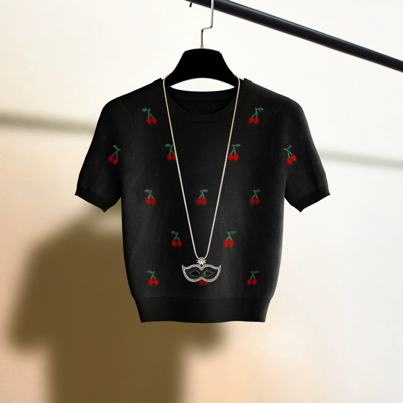متبكى أبيض متعاطف مع الكرز التطريز