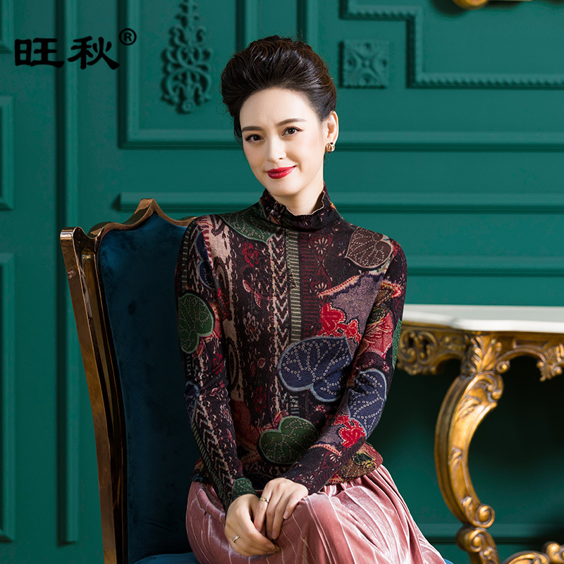تسليم قطعة واحدة 100 سترة من الصوف الخالص المرأة رقيقة الصوف القابل للذوبان في الماء سترة مطبوعة كومة طوق علوي MD806