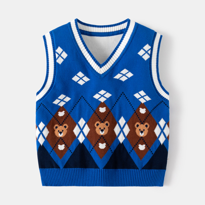 ملابس أطفال مباشرة من المصنع سترة دب منقوشة للأولاد سترة 2024 ربيعية جديدة للأطفال محبوكة برقبة على شكل حرف v