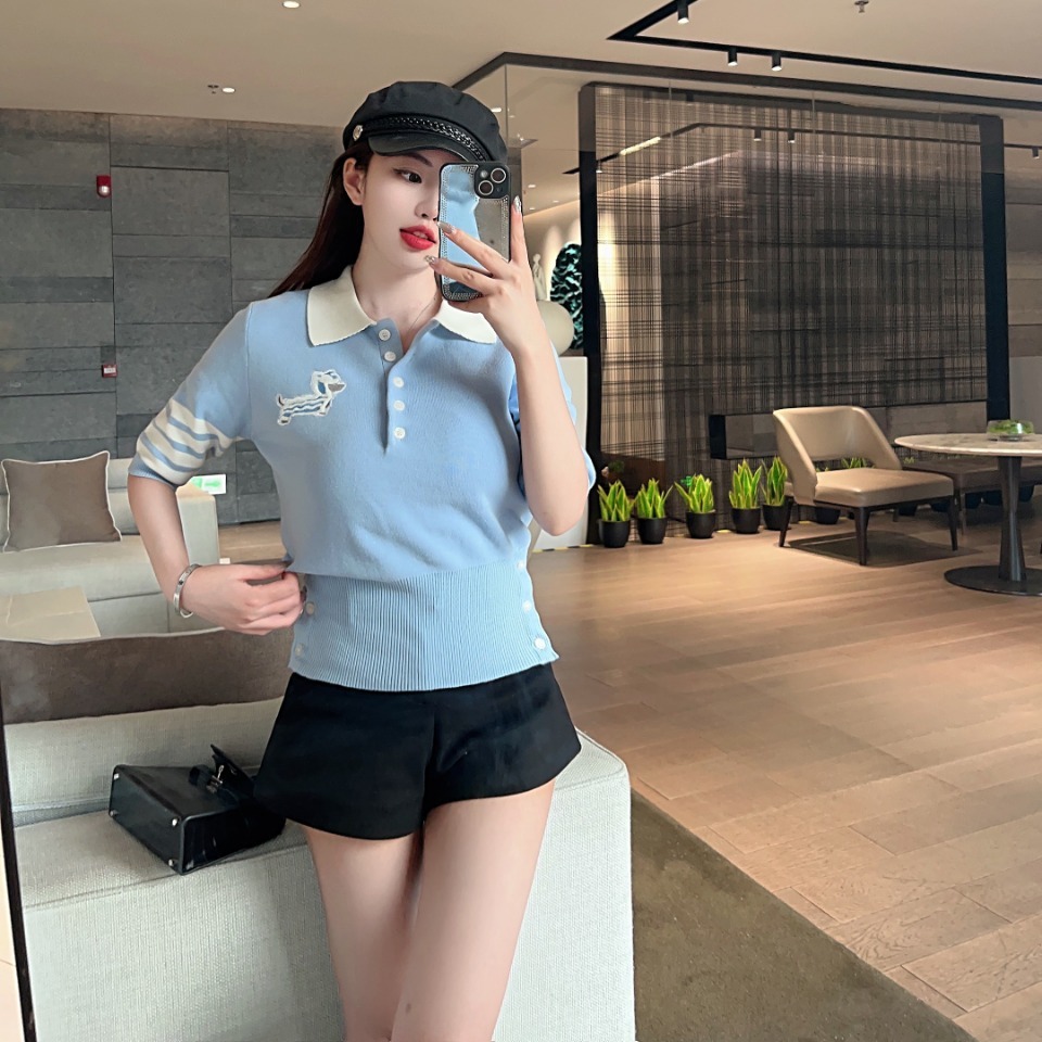 يوم شديد الأزرق 300 جم ثقيل وقذرة قصيرة من القطن الصيفي القطن الصيفي القطن والقميص القاع الأنثى