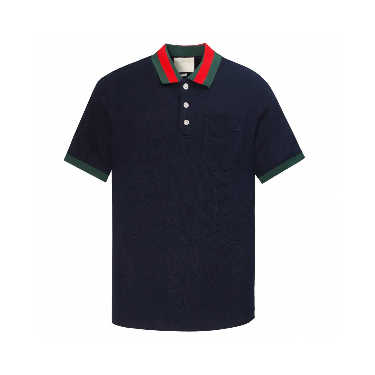 الطبعة الصحيحة Gujia 24 قميص بولو محبوك جديد للربيع والصيف زوجين بلون كلاسيكي تسمية صغيرة موضة G Home كم قصير