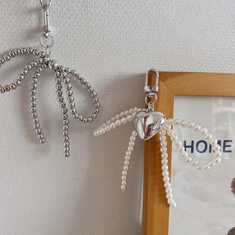 جديد كبير تقليد اللؤلؤ القوس حقيبة قلادة الموضة محكم كبير الحب المفاتيح معلقة زوجين الملحقات