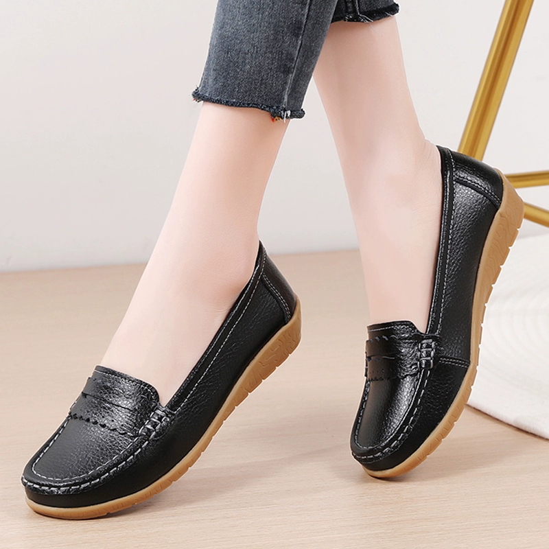 نعل سميك من الجلد المريح للربيع والخريف، حذاء بكعب عريض