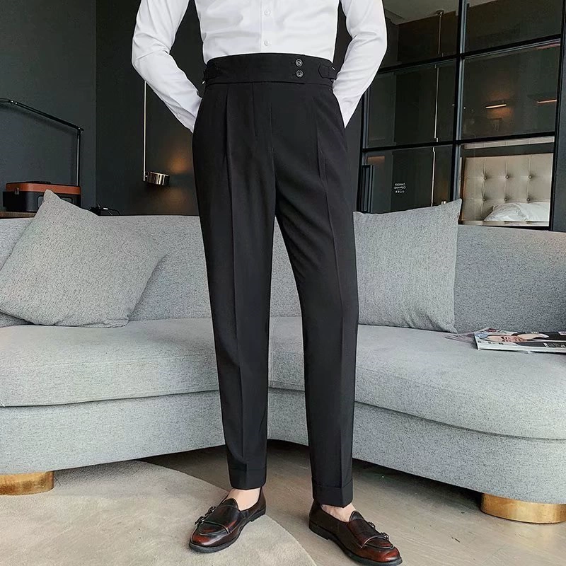 سراويل نابولي الفرنسية غير الرسمية للرجال العلامة التجارية للرجال العلامة التجارية للرجال العلامة التجارية عالية الخصر بدلة مستقيمة