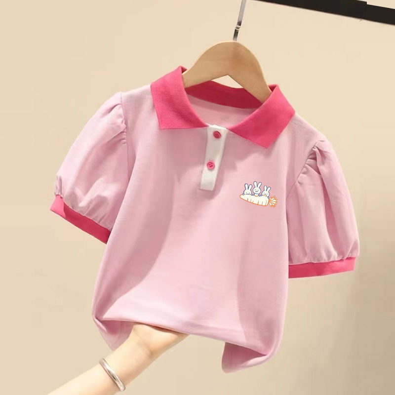 الفتيات قميص بولو بأكمام قصيرة 2024 صيف جديد للأطفال تي شيرت التلبيب كبير للأطفال المألوف رقيقة نصف كم
