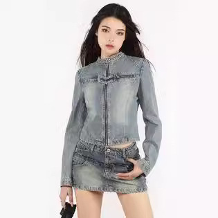 سترة دنيم أمريكية جديدة لعام 2024 بألوان متباينة، سترة سبايس بنات نسائية يابانية متقدمة، أوروبا والولايات المتحدة عبر الحدود
