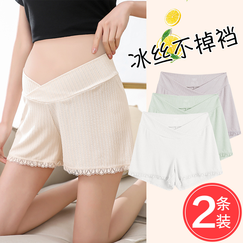 لقطة حقيقية في المخزون # سراويل أمان للنساء الحوامل سراويل صيفية مضادة للضوء للنساء الحوامل ملابس خارجية رفيعة سراويل تأمين من الحرير الجليدي