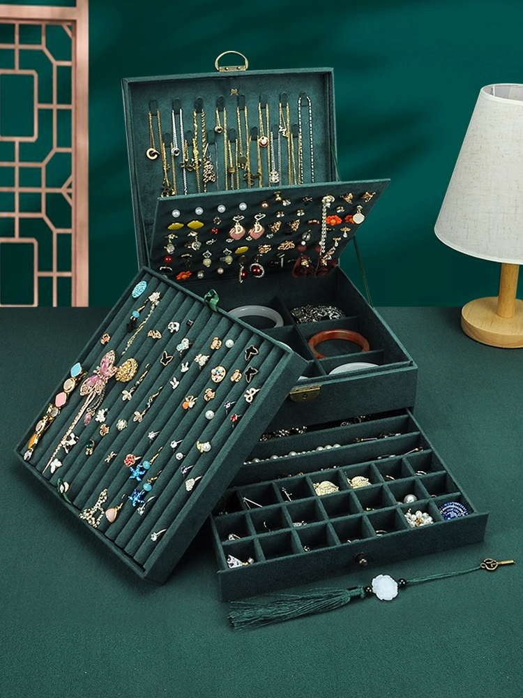 سعة كبيرة متعددة الطبقات أقراط القلادة أقراط القلادة قلادة قلادة أقراط الصندوق تخزين المجوهرات الرجعية المجوهرات