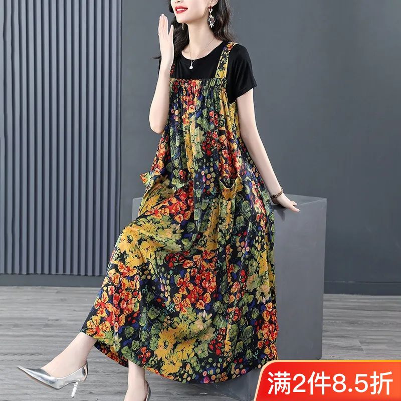 بدلة صيفية عصرية على الطراز الغربي فستان بحمالات بنمط لطيف فستان طويل على الطراز الفرنسي للسيدات بأكمام قصيرة صيفي مجموعة واحدة