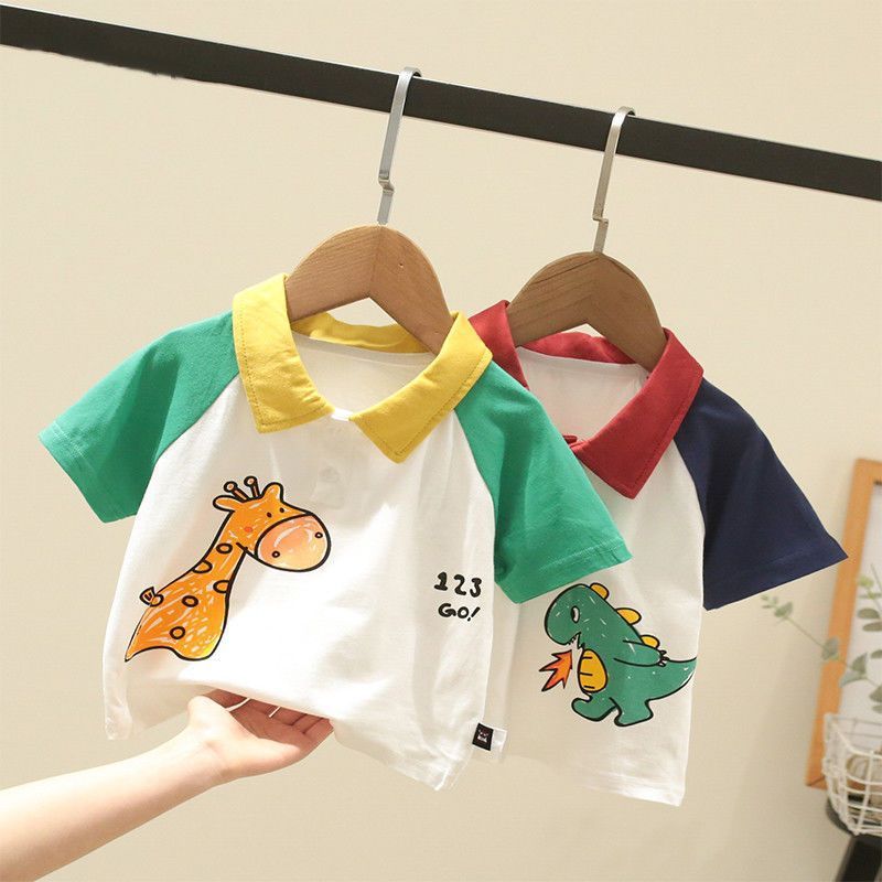 القطن الأطفال الفتيان والفتيات الأطفال 2024 صيف جديد الكرتون المطبوعة تنفس التجفيف السريع التلبيب بولو قصيرة الأكمام