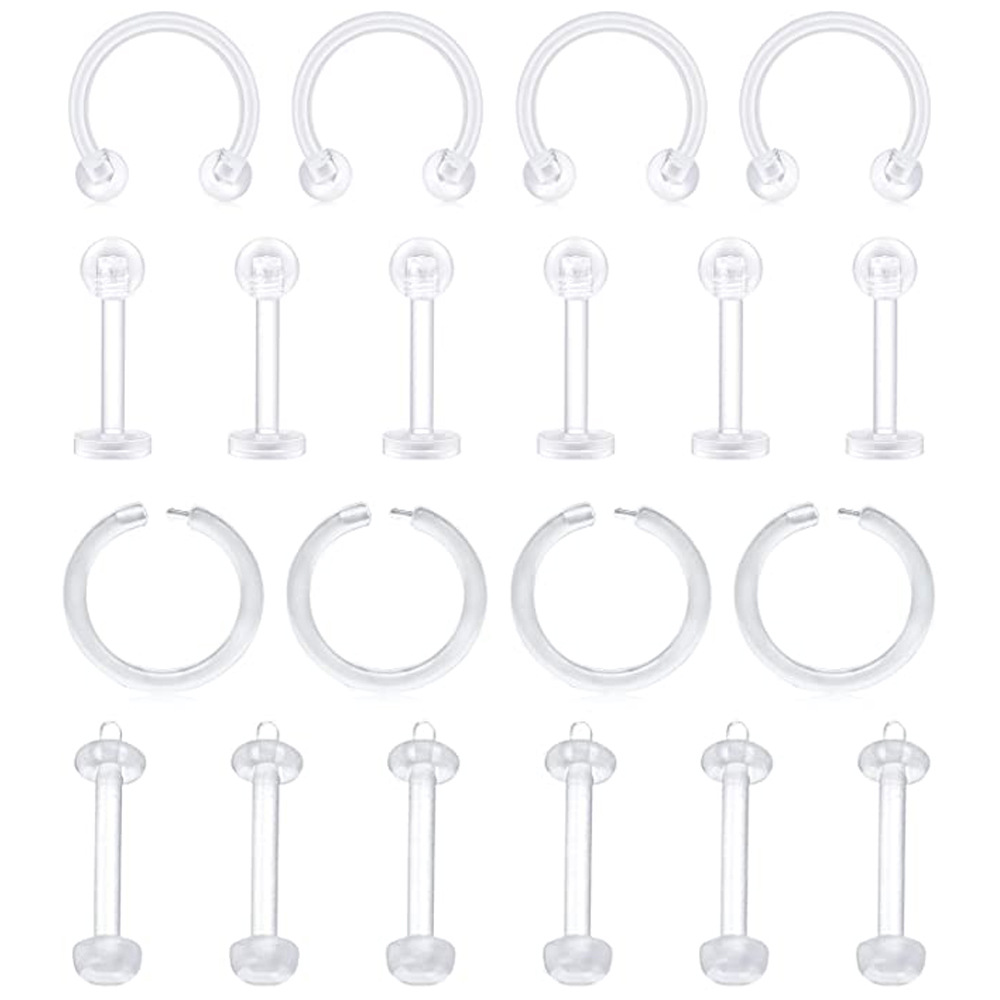مجوهرات ثقب الأكريليك المكونة من 20 قطعة عبر الحدود، أقراط أذن غير مرئية بالأشعة فوق البنفسجية على شكل عظمة الأذن والأنف والشفة وأقراط الأظافر مزيج أمازون