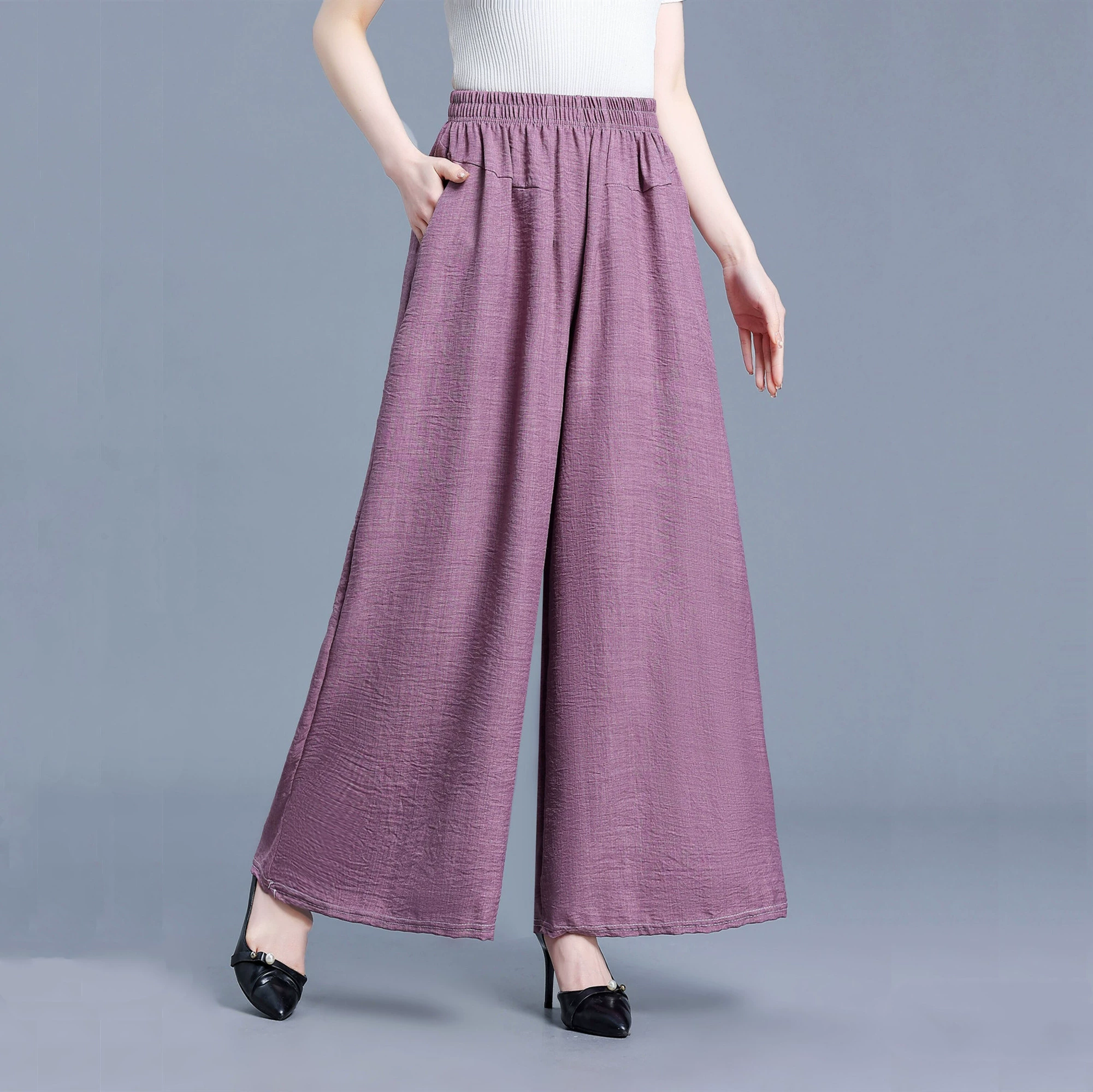 سروال كسول ربيعي وصيفي جديد من القطن والكتان فضفاض غير رسمي واسع الساق