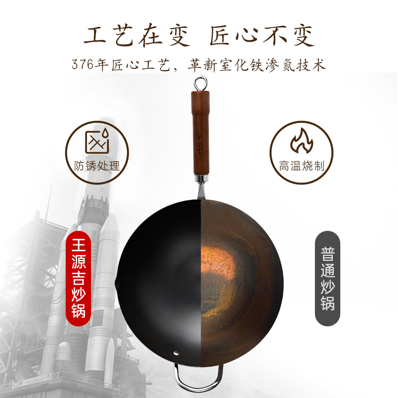 Q5ZR Wang Yuanji Iron Wok Wok المنزلية غرامة الحديد الزهر موقد غاز موقد غاز مناسبة للقلي القديم غير المطلي غير لاصق