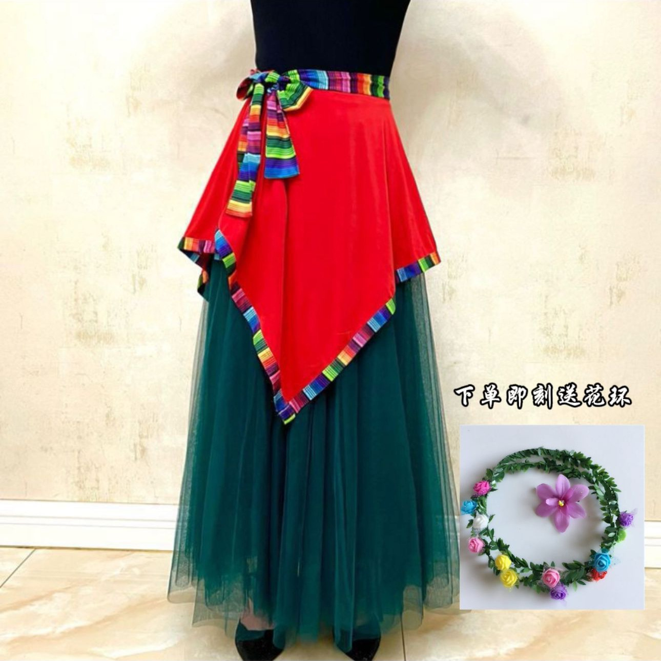 مريلة صغيرة لأداء الرقص التبتي، مريلة رقص من قطعة واحدة، مريلة رقص مربعة للأم، تنورة رقص قصيرة – ث