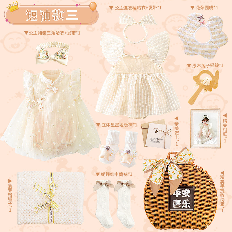 ملابس الأطفال حديثي الولادة هدية صندوق فتاة هدية اجتماع مائة يوم بدلة الصيف الأميرة الرياح البدر هدية الطفل بالجملة