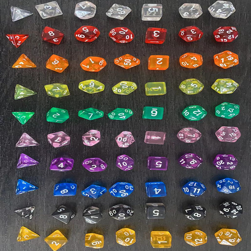 مجموعة متعددة السطوح الشفافة النرد الرقمي لون الاكريليك لعبة الزنزانات والتنينات النرد الشفاف متعدد الألوان